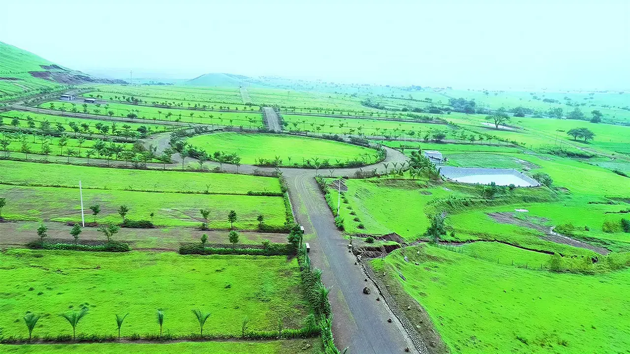We have a wonderful 20 acres land situated at Raigad Nagar, near Vilholi, Mumbai –Agra highway, Nashik for Bungalows and villas. Just 2 kms away from Jain Mandir & from decathlon. Second Piece of land from highway just 100 meters distance. A beautiful scenic location on national highway. It is also near from Valdevi dam within a distance of 3 kms. The land is surrounded by beautiful fresh greenery secured compound to entire layout. A greenery view and beside a small mountain which is untouched under forest land. It will be a permanent mountain.